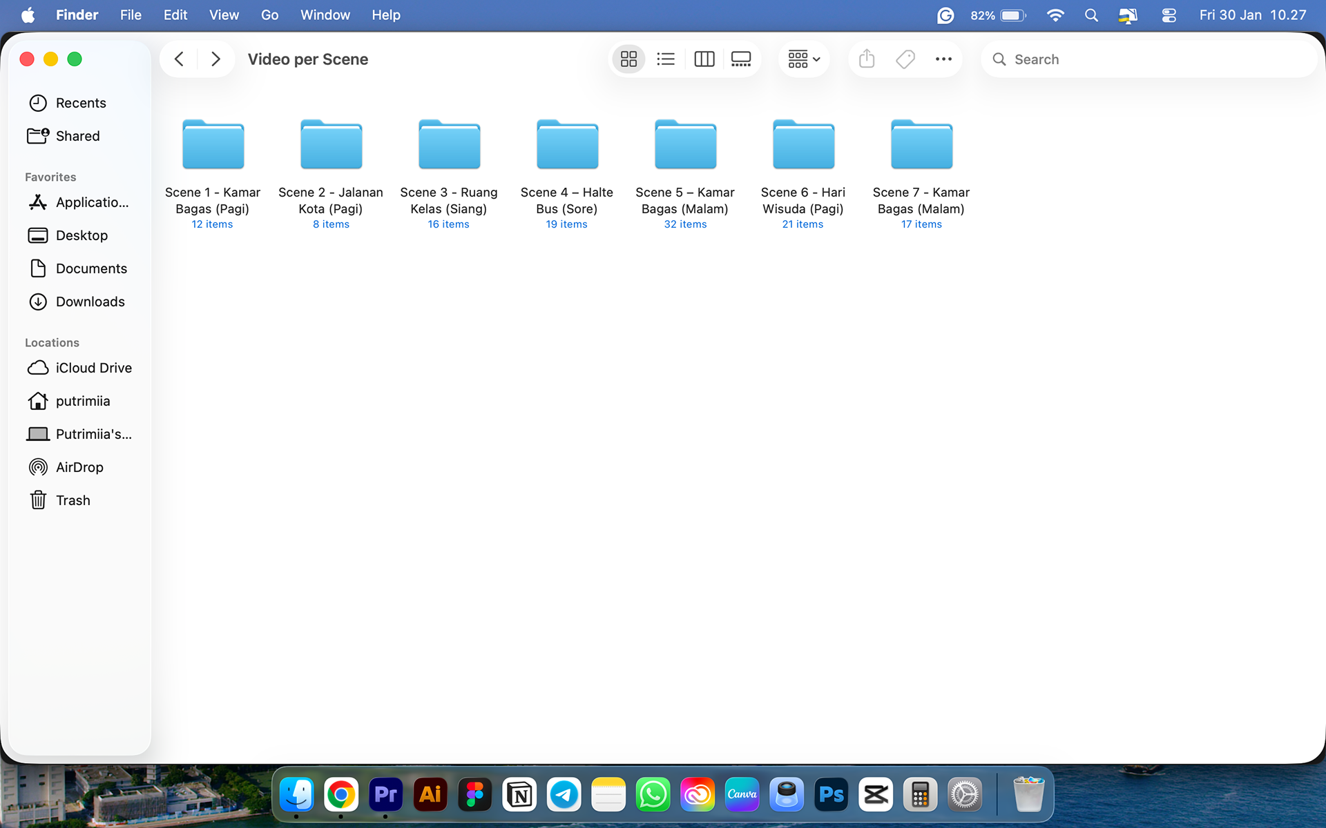 After making the storyboard scene by scene, I created a folder to split the scenes and the assets, like sound effects, etc.