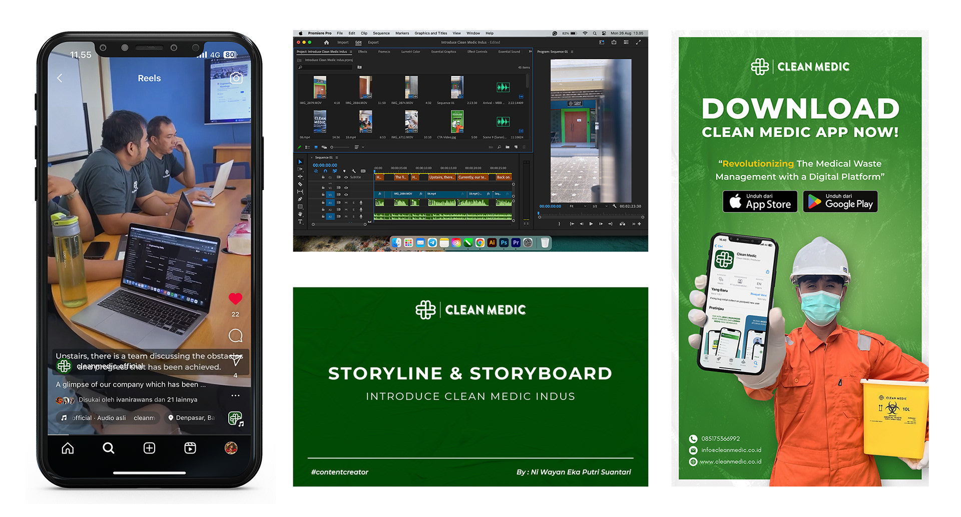 I create content for social media platforms like Instagram and InstaStory feeds, LinkedIn, and Facebook. For InstaStory posts, I use Indonesian specifically to reach my target Indonesian audience.